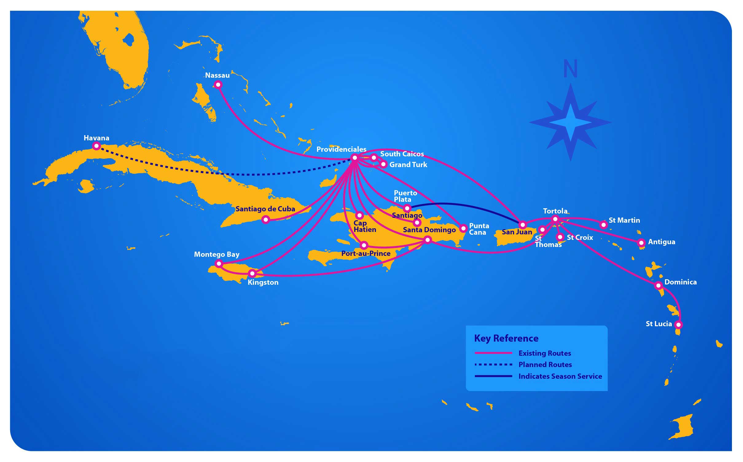 interCaribbean Airways, a Turks & Caicos Islands based airline is “Connecting you and the Caribbean.” Moving around the Western Caribbean could not be easier than flying with interCaribbean Airways. Our connections can save you as much as a whole day in simply getting from one island to the next. We operate Embraer ERJ145 Jets (50 seats), EMB120 aircraft (30 seats) and DH6 Twin Otter (19 seats) and a Britten Norman Islander. Connecting 22 cities in the Caribbean, no airline flies to more cities in the Caribbean than interCaribbean.